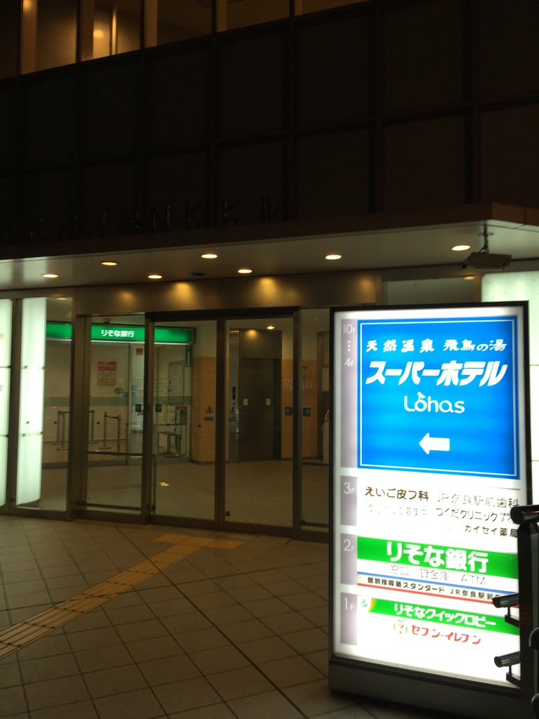 從JR奈良的東口出來,往右手邊走,馬上就可以看到SUPER HOTEL的入口了